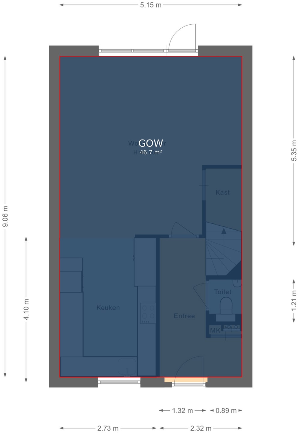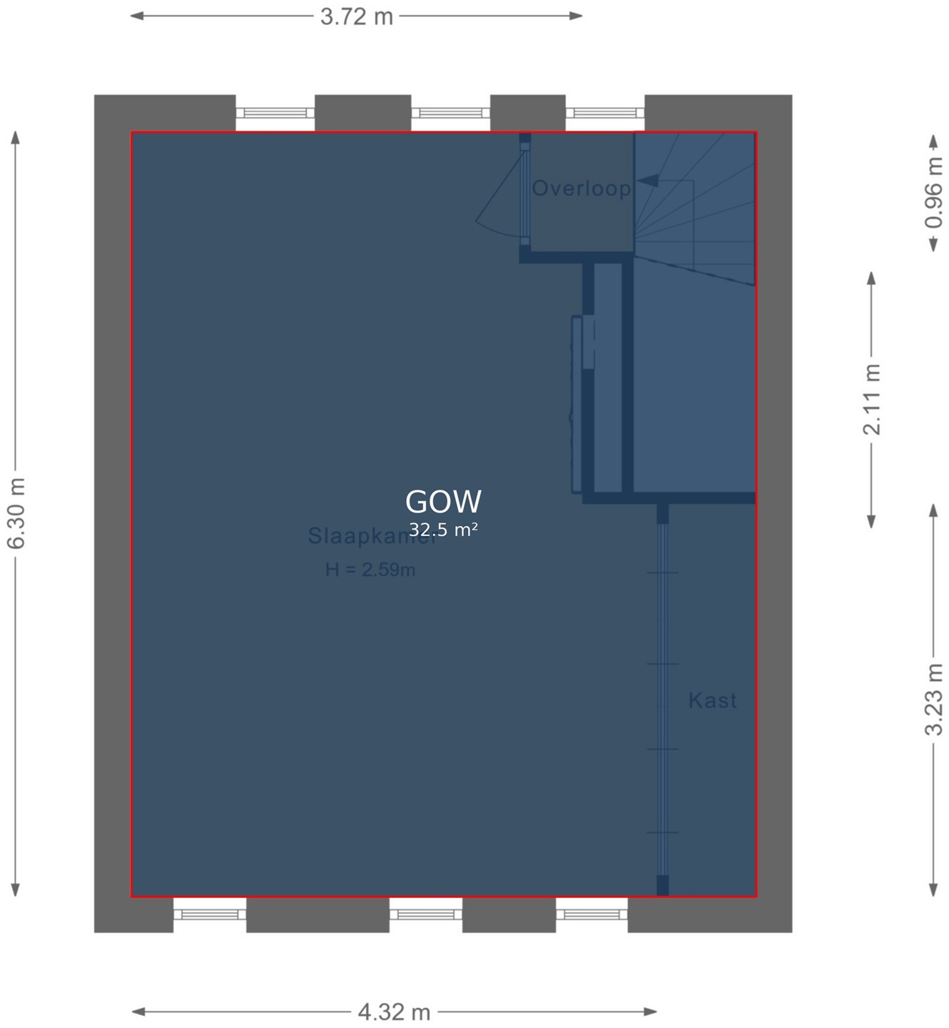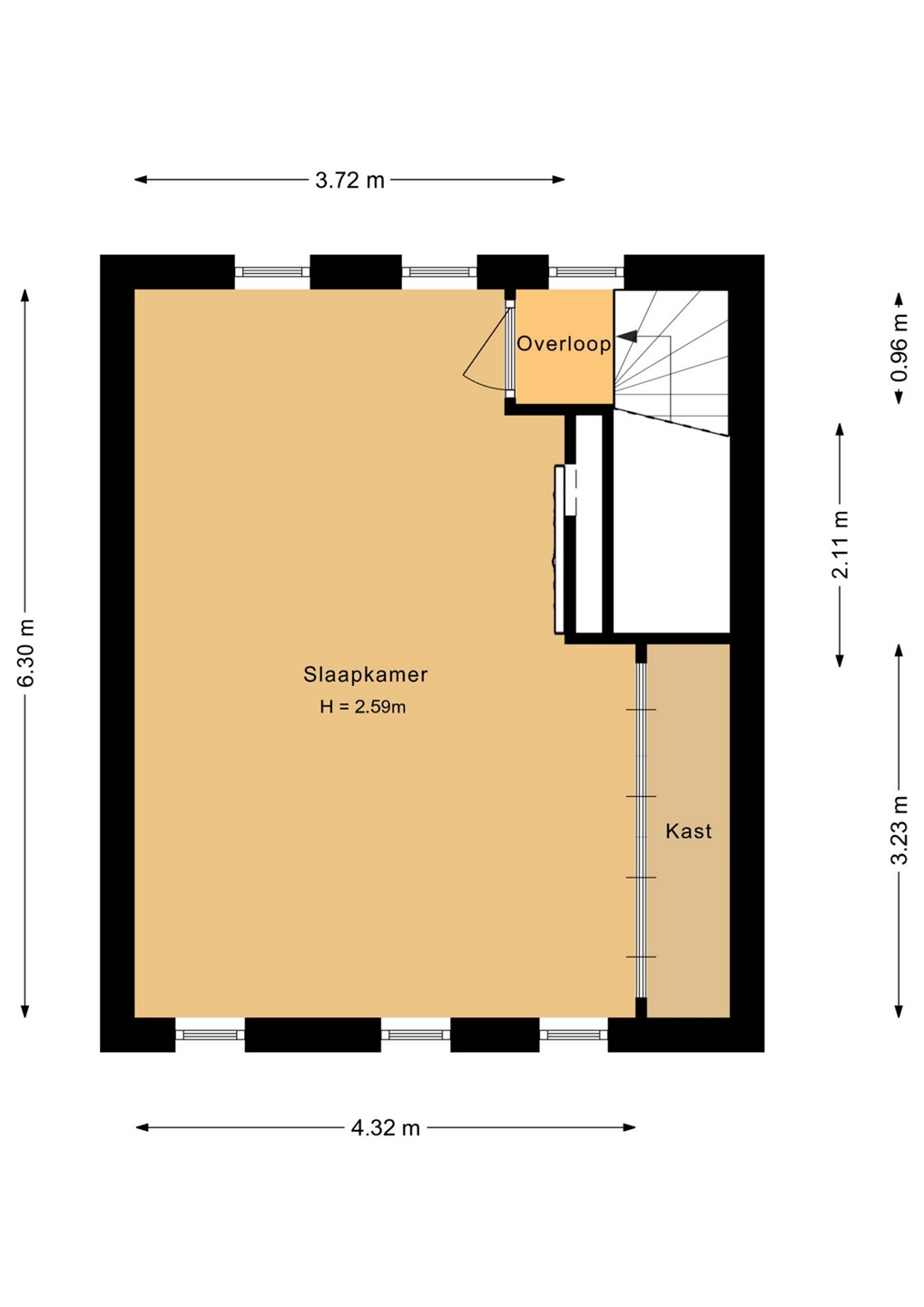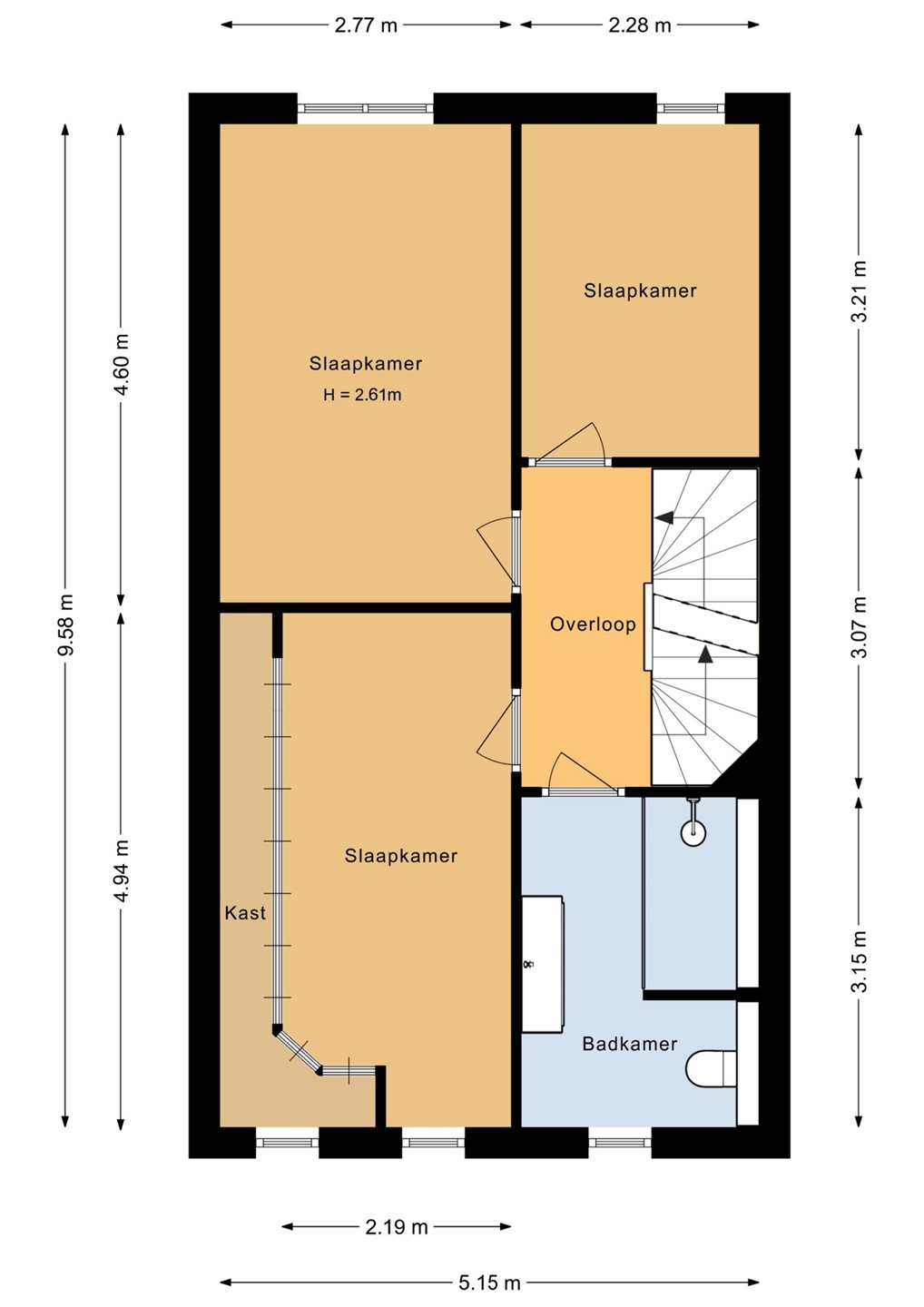 • Alle binnendeuren zijn hoge stompe deuren, zonder bovenlicht.