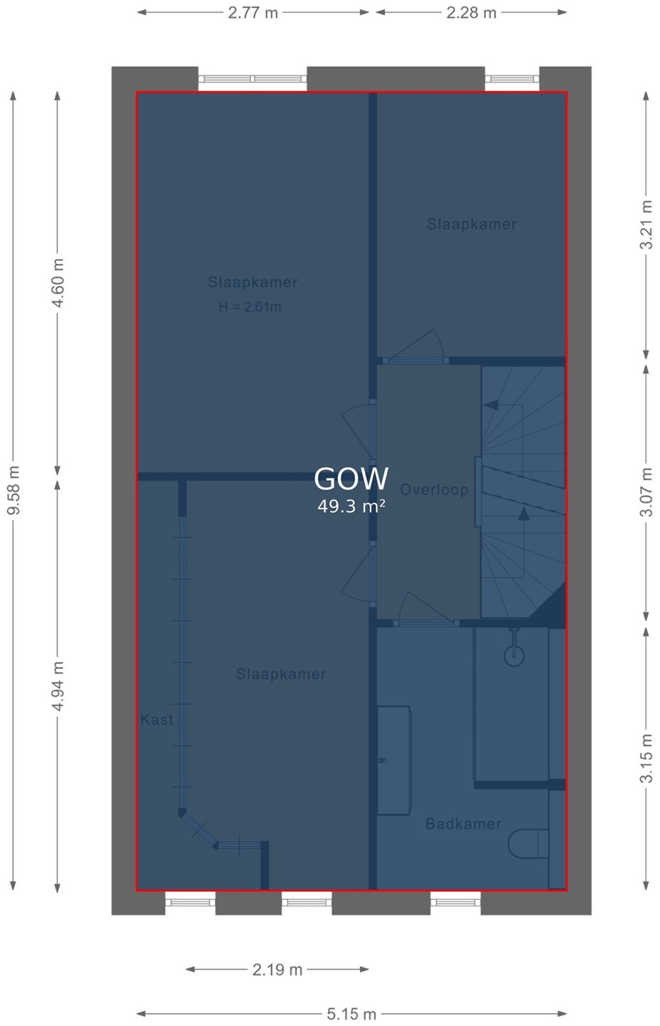 De woning is ook voorzien van rolluiken op de bovenste verdieping.