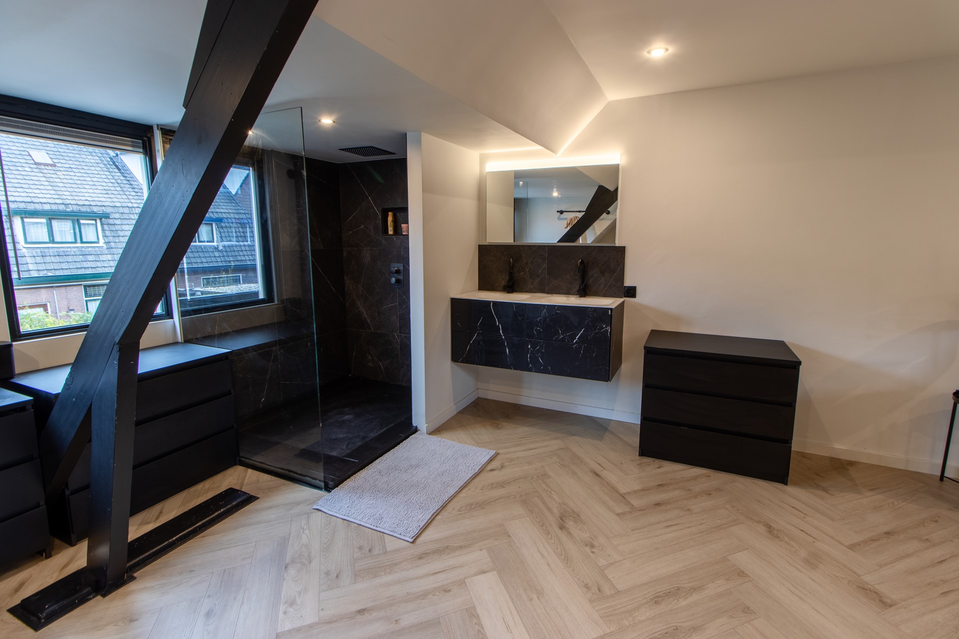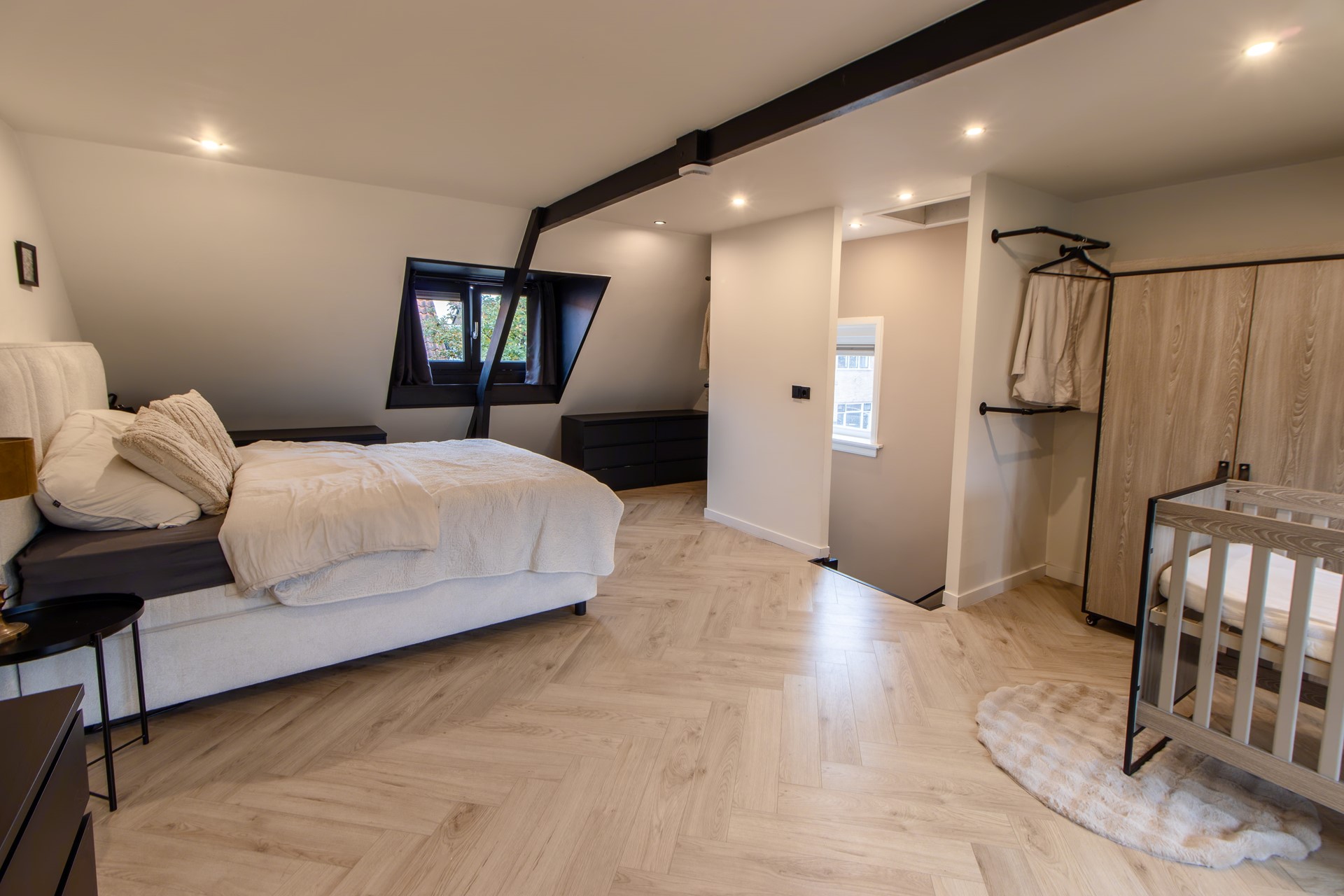 The upper floor can be flexibly arranged: two spacious bedrooms or three rooms—for example, two smaller bedrooms and one larger one, similar to the original layout typical of the Friezenbuurt neighborhood. There is even a connection under the floor for installing a freestanding bathtub in the bedroom, for those who really want to live in luxury. Or don't want to create bedrooms. Look at the extra impression photos for inspiration.