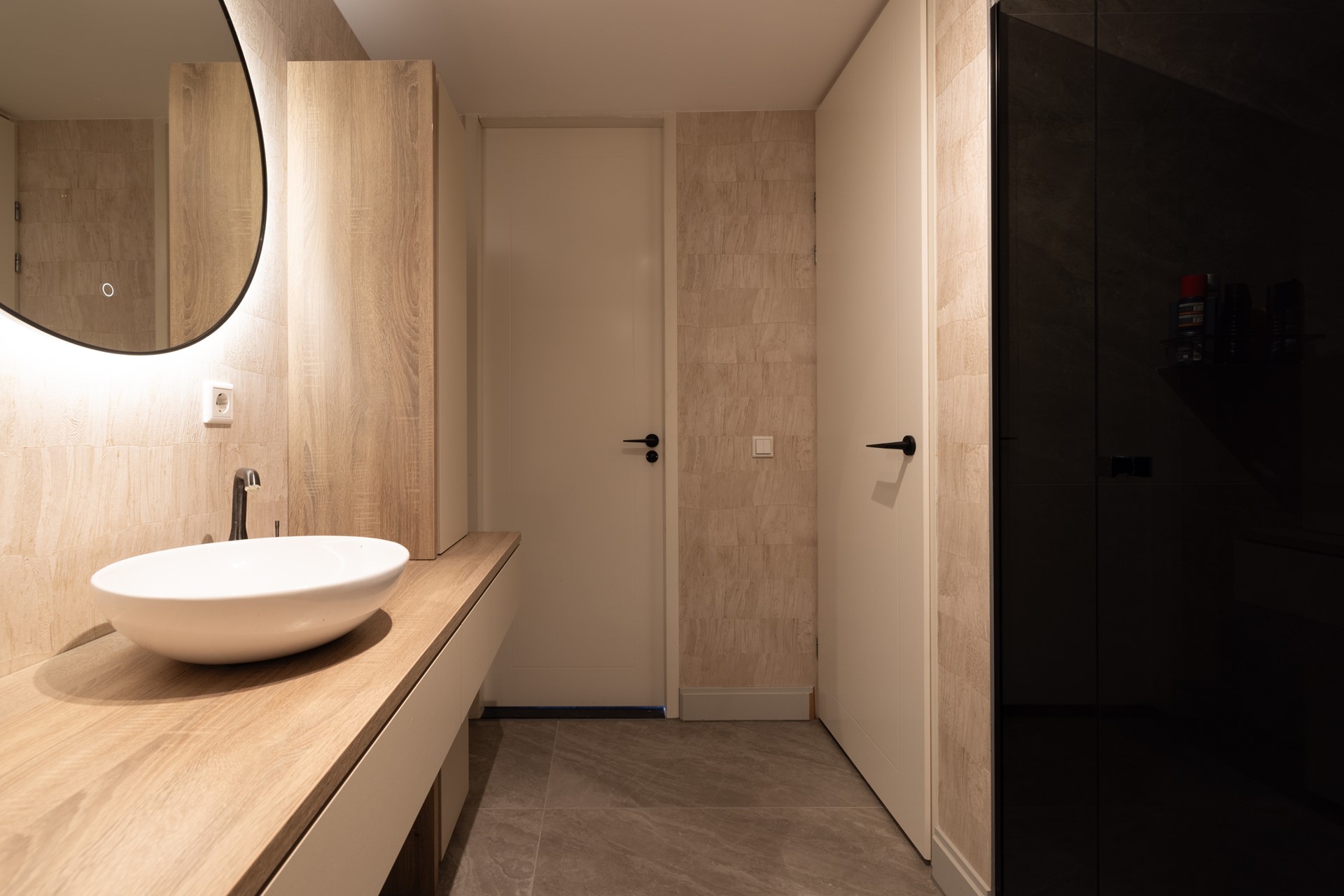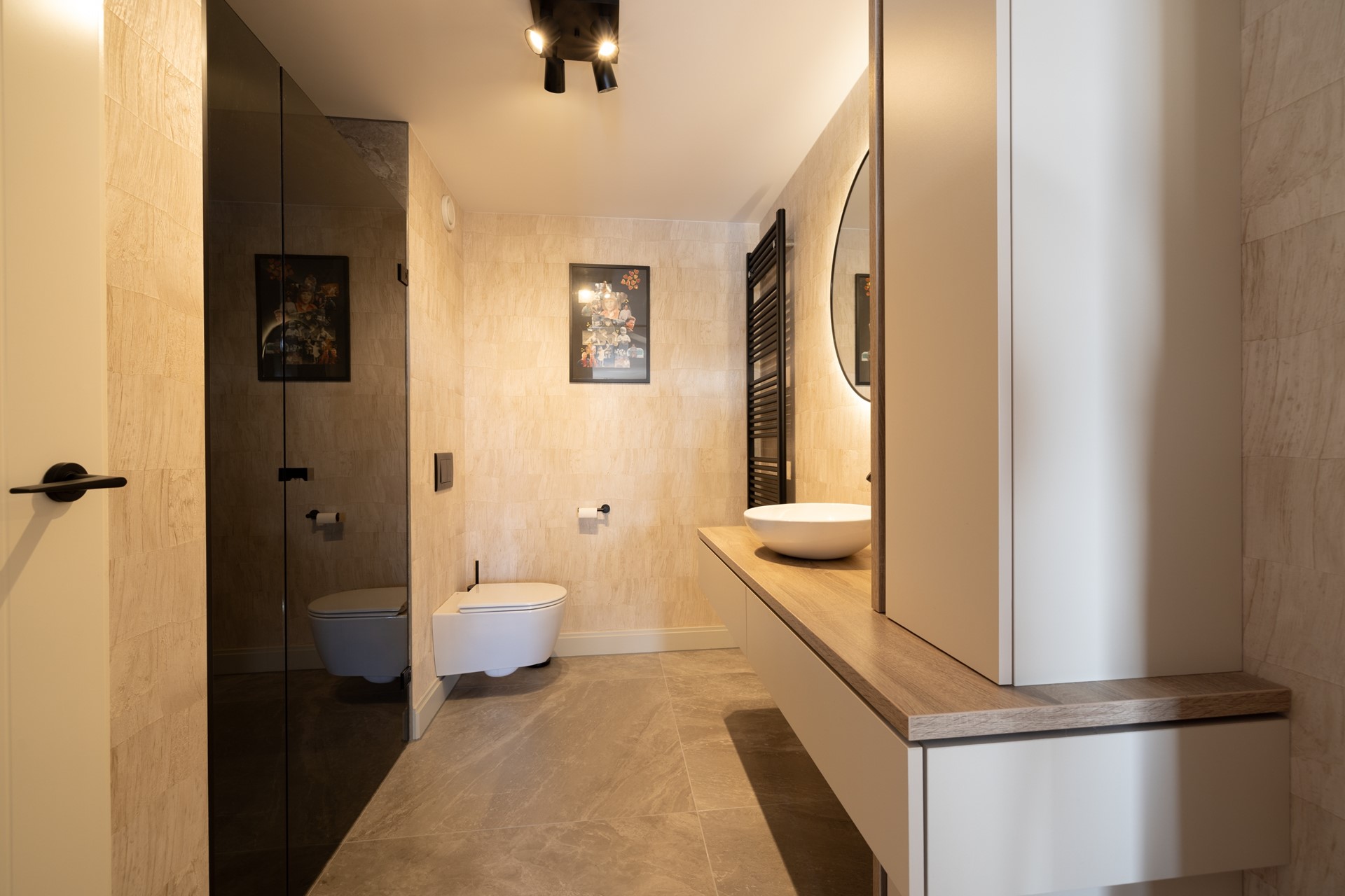 Verder vind je hier een separaat toilet, een vernieuwde badkamer met douche en wastafel, en een praktische kast met aansluiting voor wasmachine en droger.